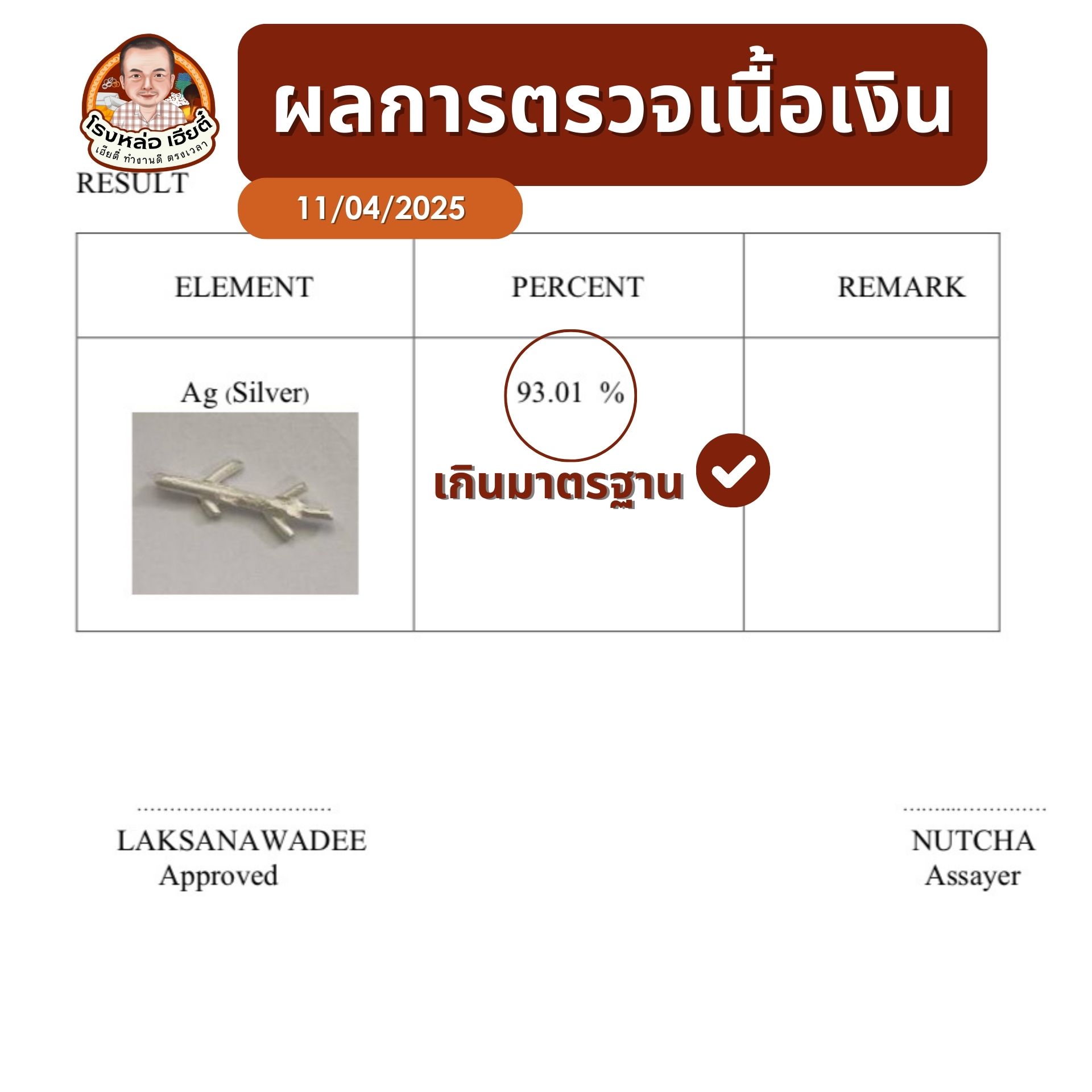 ผลตรวจเนื้อเงินรวมผลตรวจงานหล่อเงินของเฮียตี๋